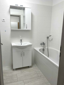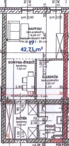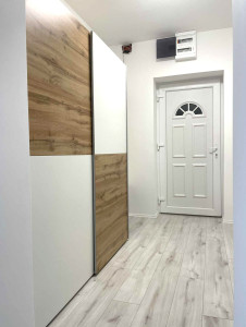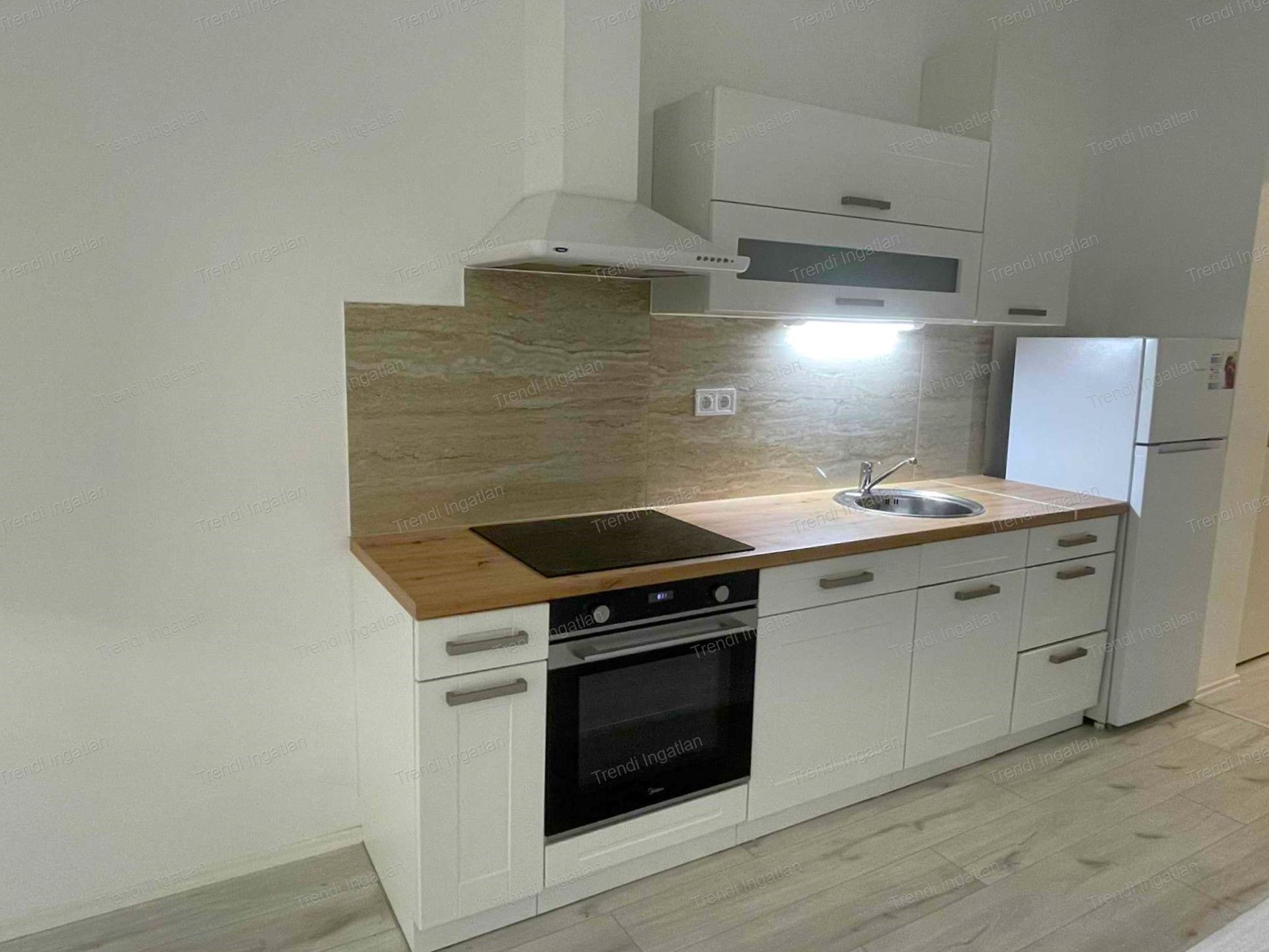 Az ingatlanban amerikai konyhás nappali, tágas gardróbszoba, káddal felszerelt fürdőszoba, előtér található.  A konyha gépesített konyabútorral rendelkezik. A közlekedőben beépített szekrény található.