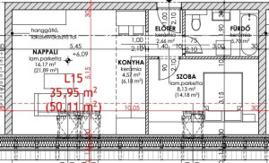 A meghirdetett tetőtérben található bruttó 50,11 nm-es, nettó 35,95 nm-es ingatlanban amerikai konyhás nappali, szoba, fürdőszoba, előtér kerül kialakításra.