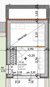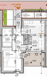 A meghirdetett 1. emeleten található 50,31 nm-es lakásban az alsó szinten amerikai konyhás nappali, szoba, fürdőszoba és előtér található. Nappaliból 7,94 nm-es erkély nyílik. A nappaliból vezető lépcsőn keresztül érhető el a galéria, ami akár hálószobának is alkalmas.