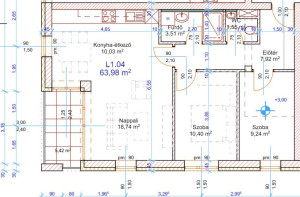 Az ingatlanban tágas, amerikai konyhás nappali, 2 szoba, fürdőszoba, WC, közlekedő található. A nappaliból 5,42 nm-es erkély nyílik.