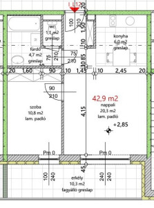 A meghirdetett 1. emeleten található 42,90 nm-es lakásban amerikai konyhás nappali, szoba, fürdőszoba, külön WC, előtér kerül kialakításra. Nappaliból 10,30 nm-es erkély nyílik.